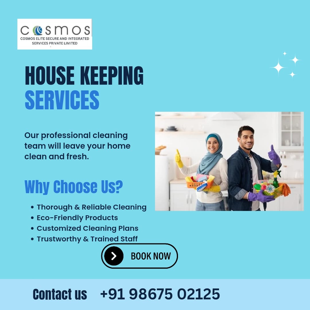 Our professional housekeeping service provides the best, most reliable cleaning solutions for homes and offices. We are committed to delivering high-quality, affordable, and thorough housekeeping services that keep your space fresh, hygienic, and well-organized. Our trained and experienced staff use safe cleaning products and proven techniques to ensure excellent results every time. Whether you need daily, weekly, or one-time cleaning, we tailor our housekeeping services to meet your needs. Book our trusted housekeeping service today and enjoy a spotless, stress-free environment.